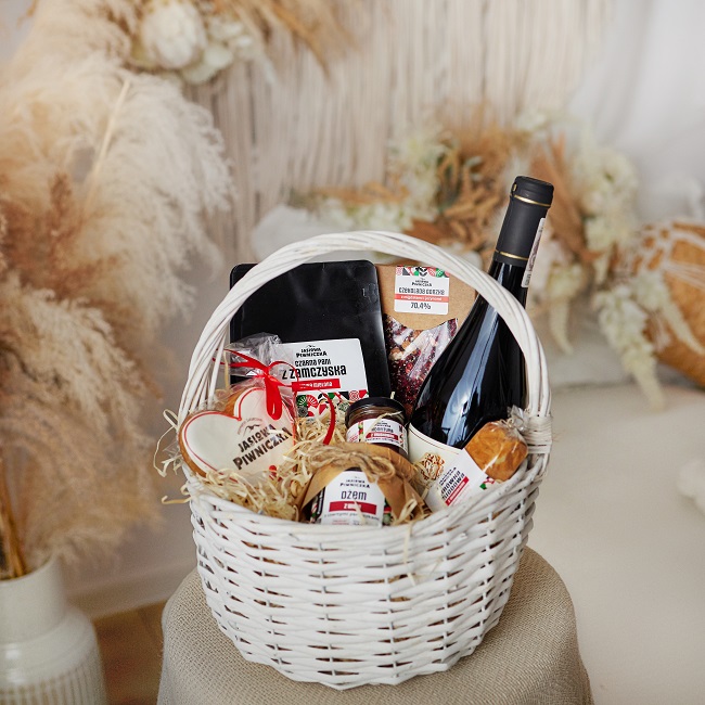 Kosz Prezentowy Świąteczny Pełen Dobroci z regionalnym winem